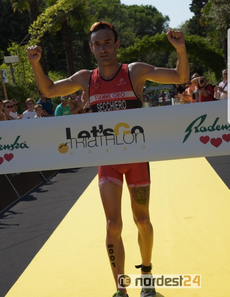 Non avevano mai partecipato prima all'Olimpico di Grado i due vincitori di Let's Go Triathlon 2019: Andrea Secchiero, milanese delle Fiamme Oro, indicato tra i favoriti, ha tagliato per primo il traguardo tra gli uomini in 1h 54'09''.