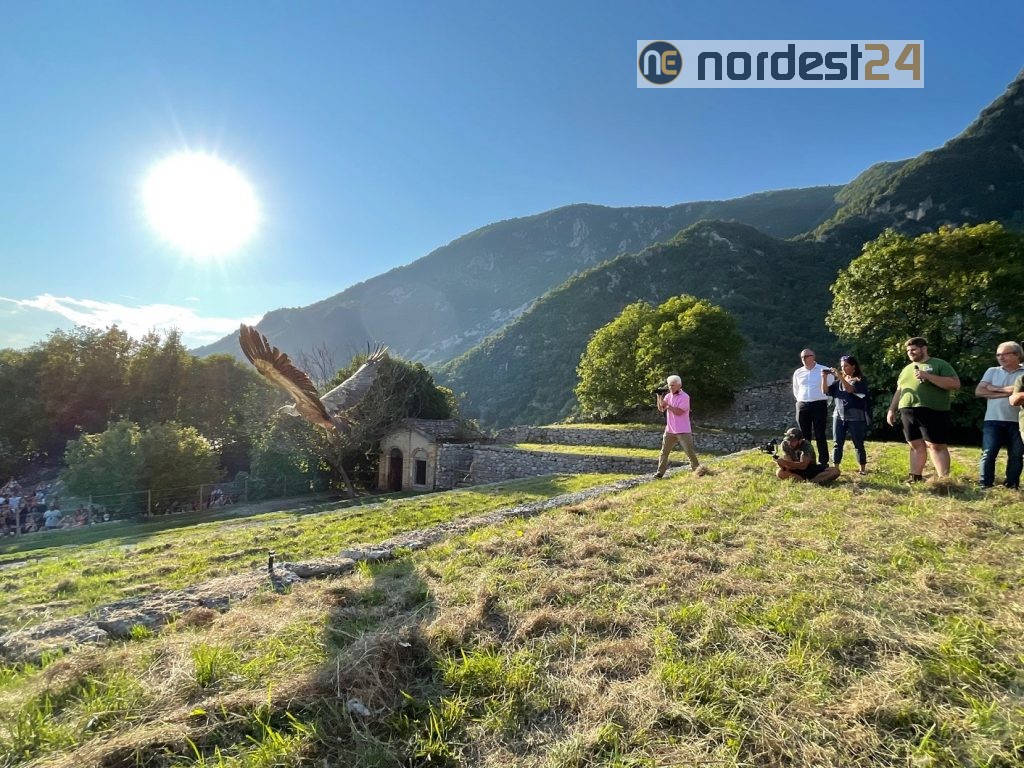 Il culmine, davanti a un nutrito pubblico che ha affollato le terrazze erbose sottostanti il sito scelto dagli studiosi, è stato raggiunto con la liberazione di tre maestosi grifoni, ultimi a prendere il volo dopo una lunga serie passata attraverso l'addio a gheppi, allocchi, tortore, merli, civette e poiane.