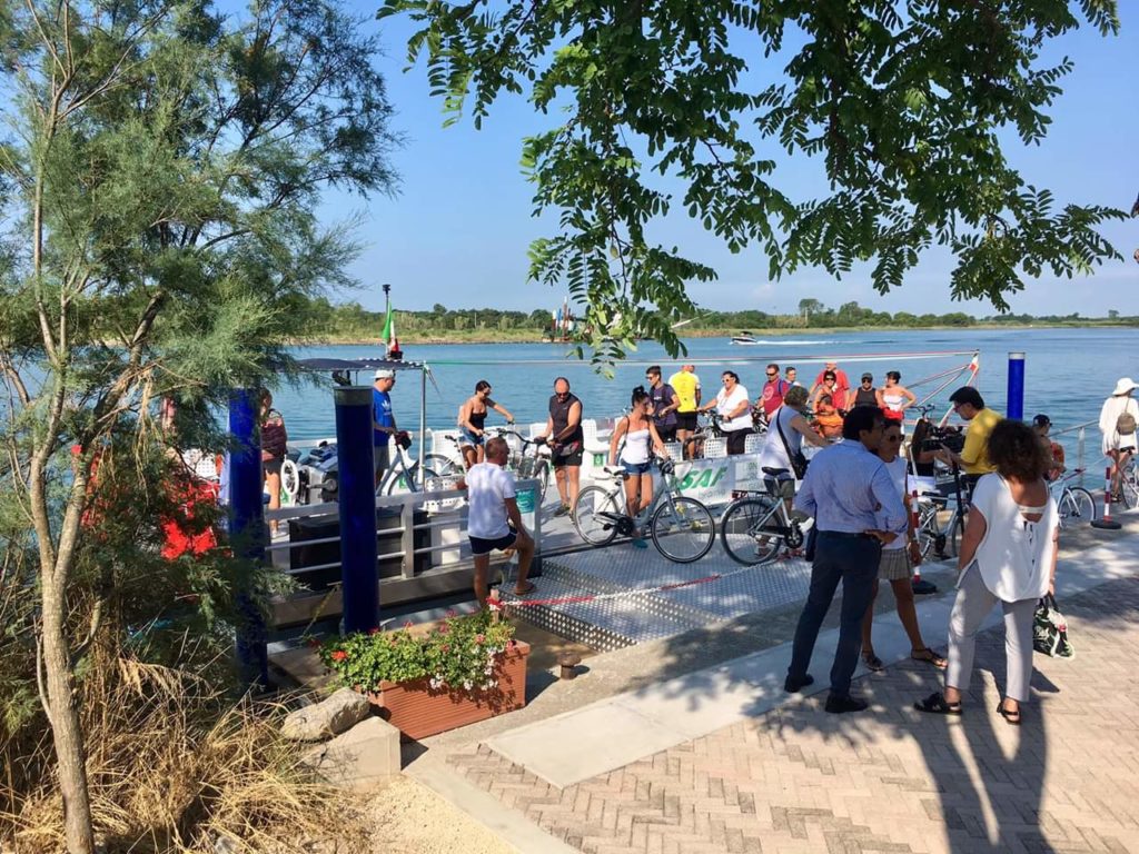 Inaugurato oggi 31 luglio il nuovo approdo ed il nuovo traghetto ciclopedonale sul Tagliamento che collega Lignano a Bibione.