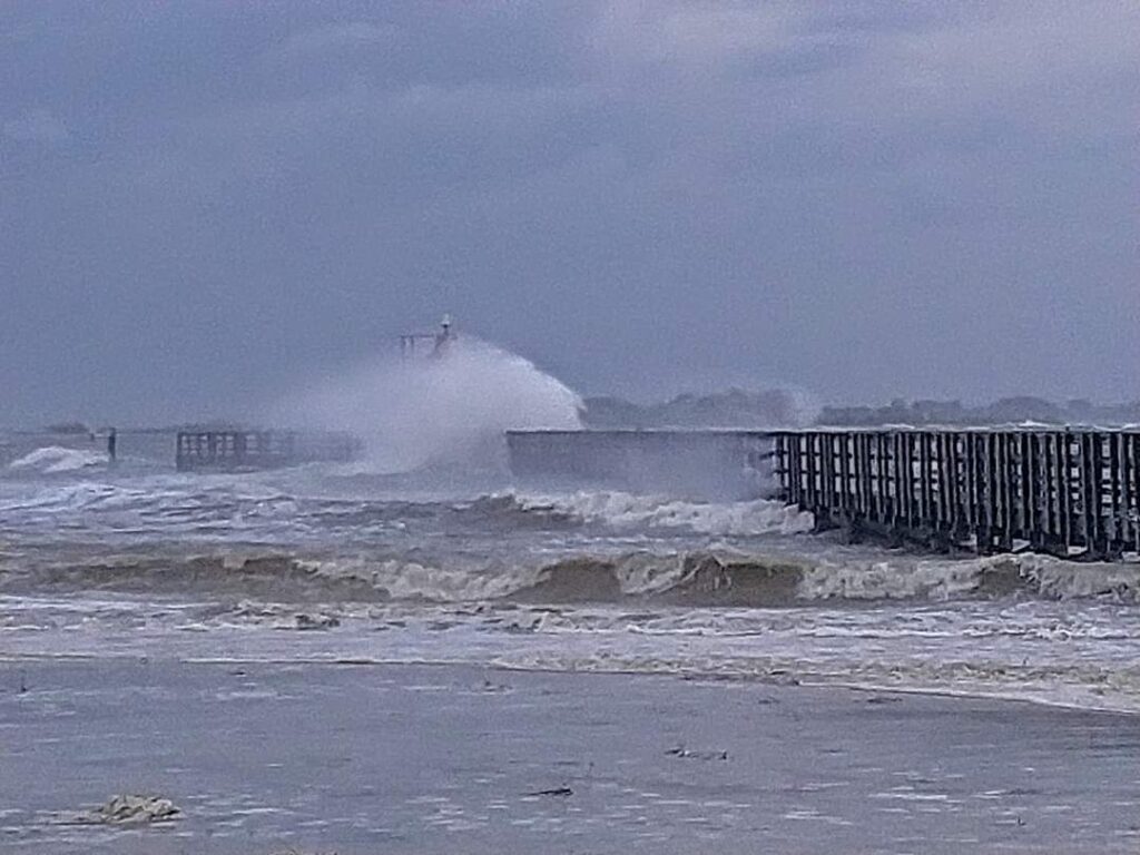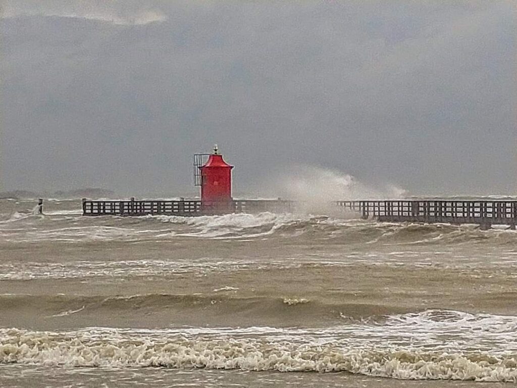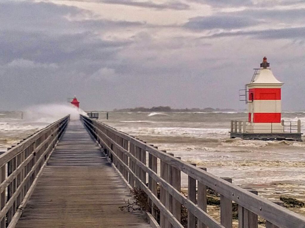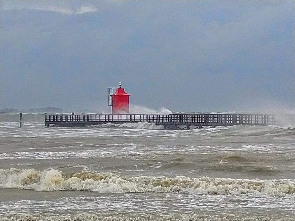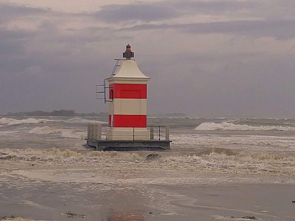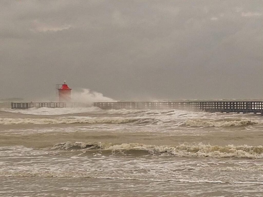 Lignano, la mareggiata al faro rosso: le onde alte invadono il pontile - FOTO