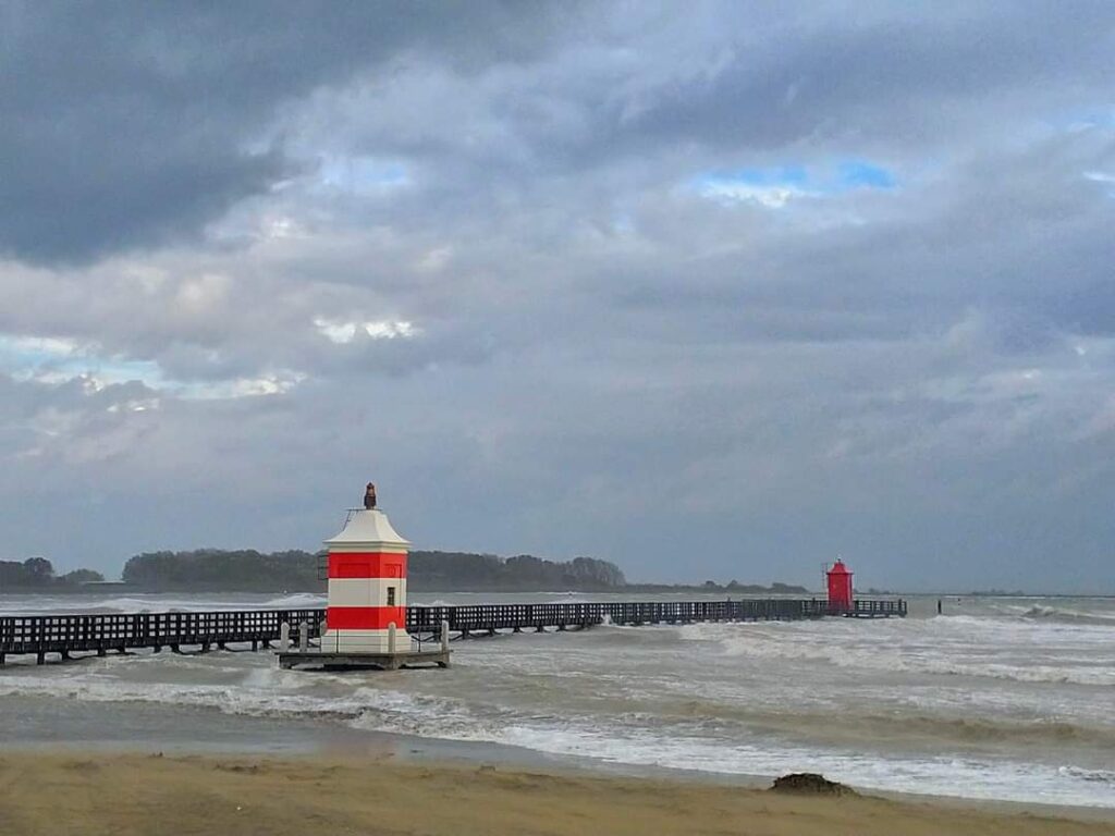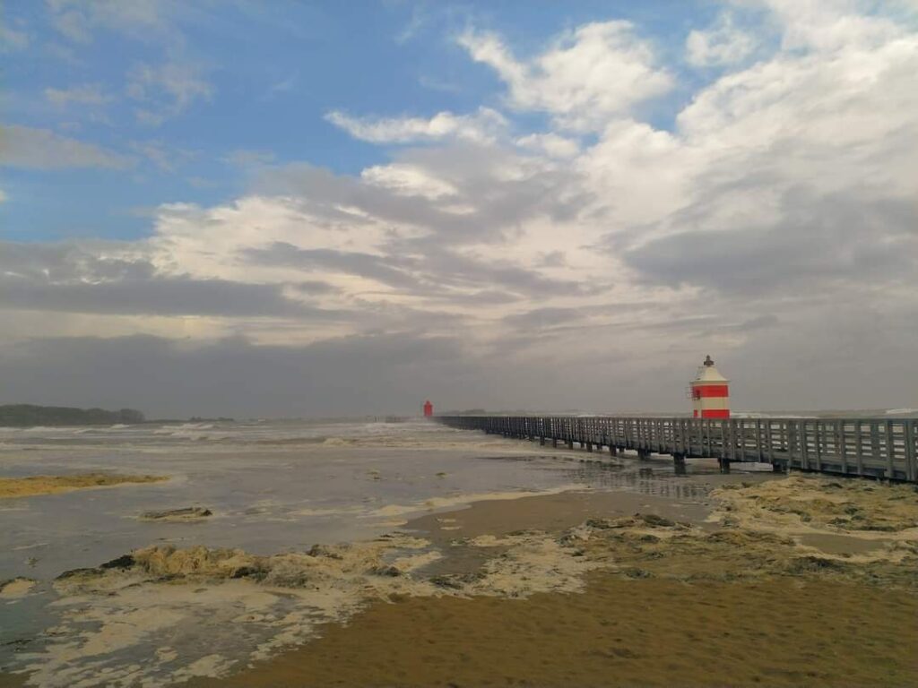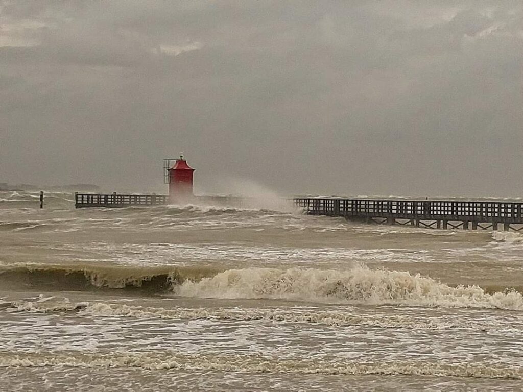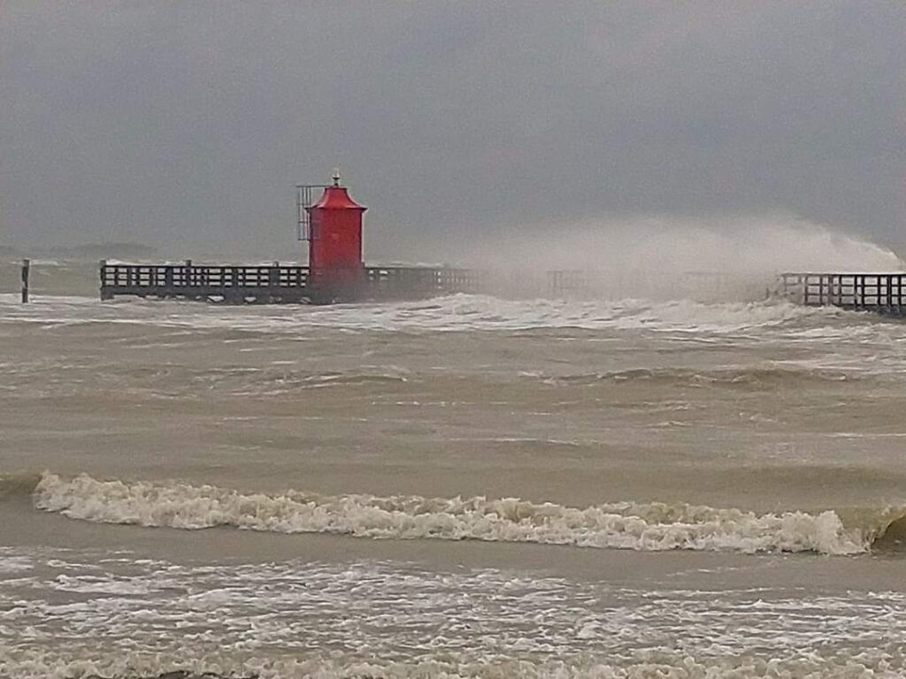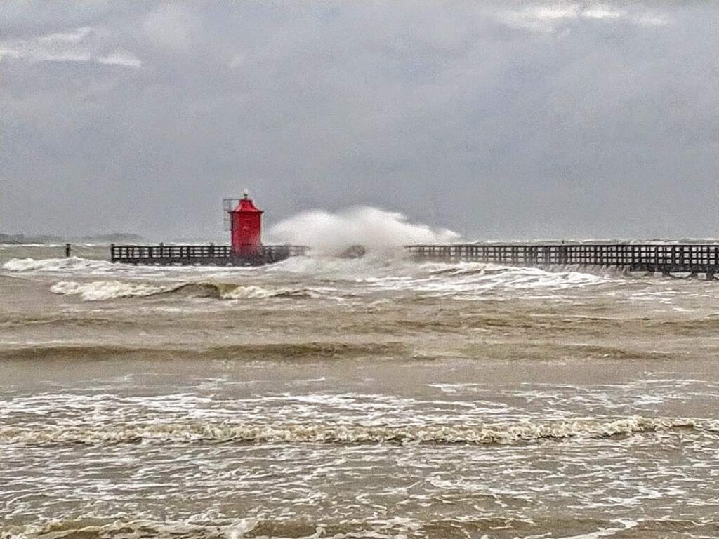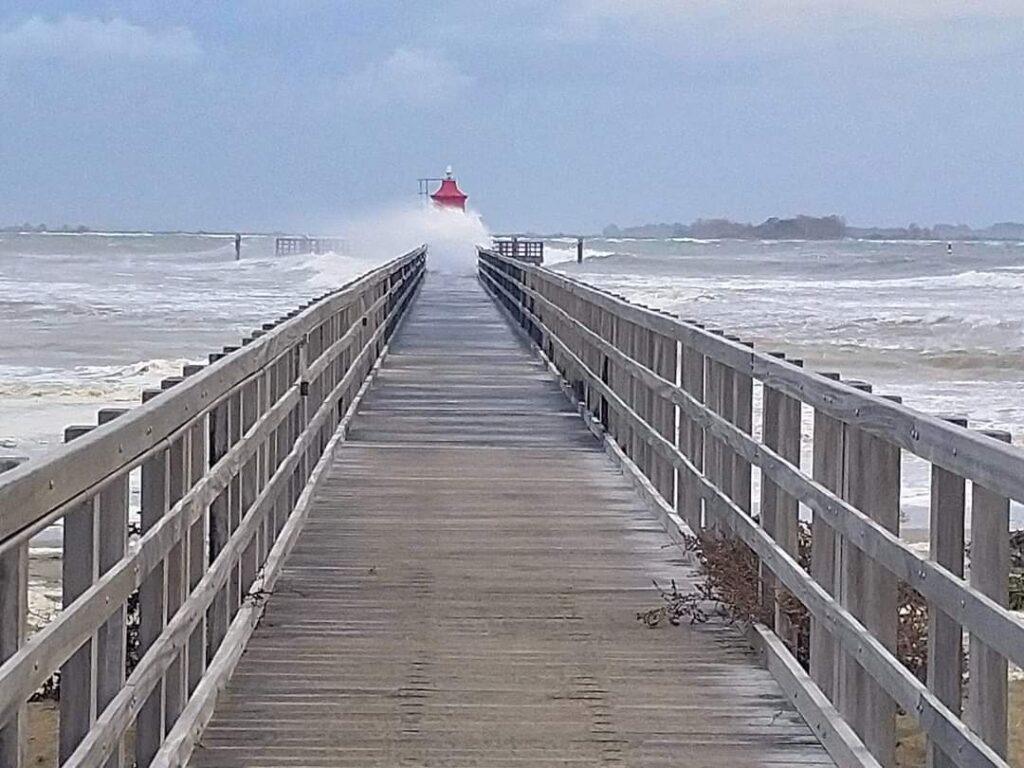 Lignano, la mareggiata al faro rosso: le onde alte invadono il pontile - FOTO