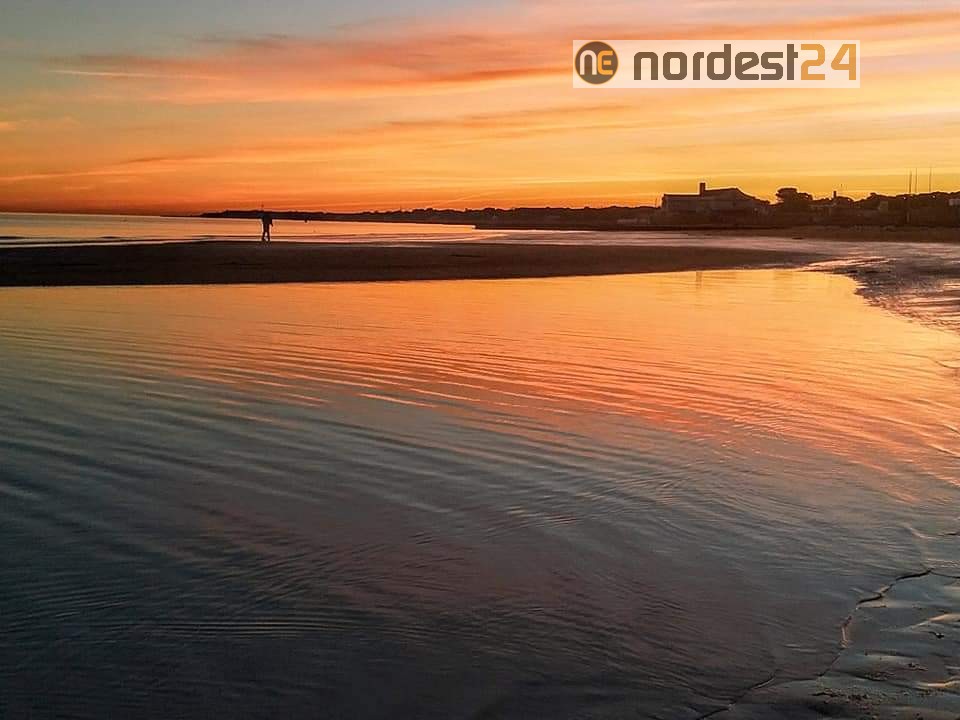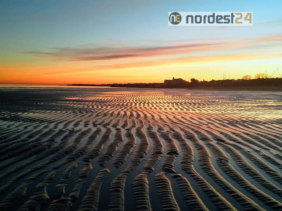 Lignano, le ultime luci del giorno al tramonto salutano la spiaggia