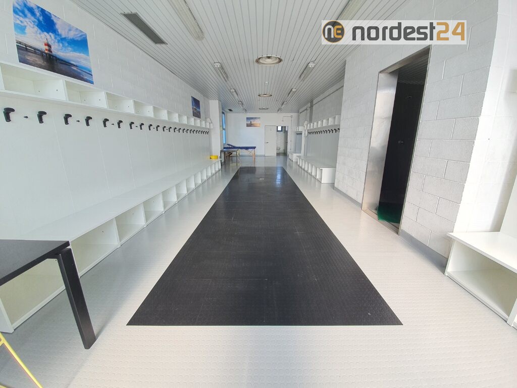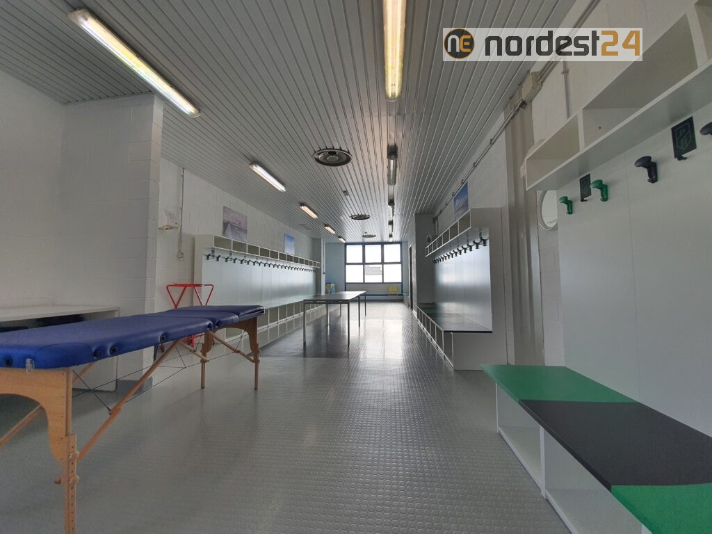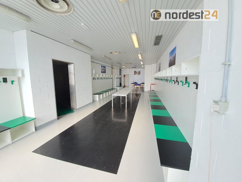 È stata infatti sostituita la precedente pavimentazione in linoleum in tutto l’edificio antistante il campo principale. Questa struttura comprende un atrio, gli spogliatoi dei giocatori, gli spogliatoi degli arbitri e alcune altre sale.