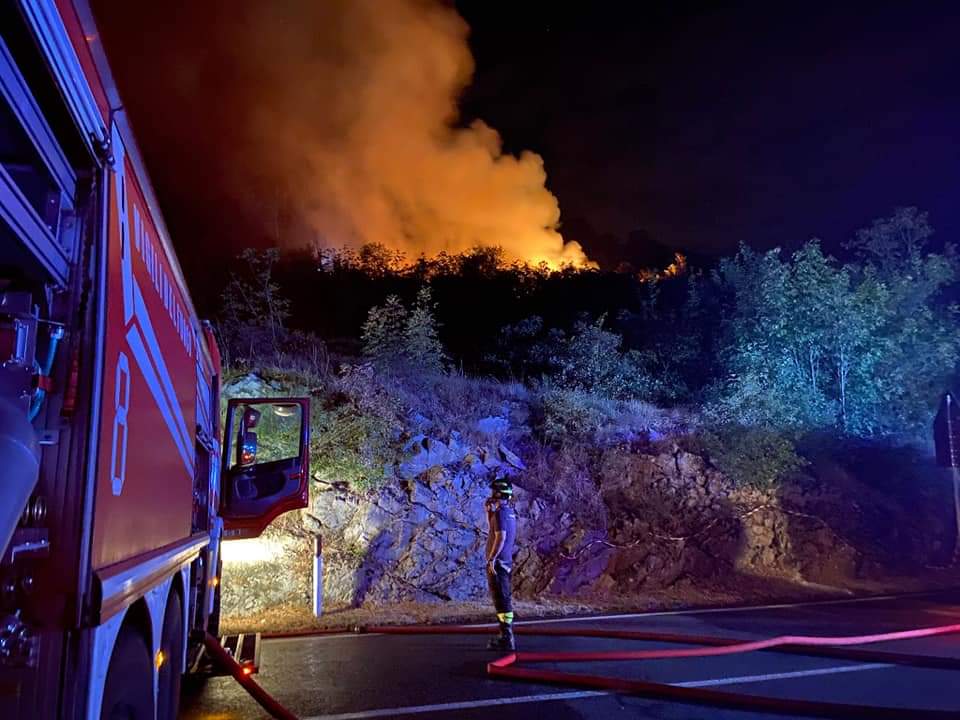 Sono proseguite tutta la notte da parte del Corpo forestale, Vigili del fuoco e volontari della Protezione civile le operazioni di spegnimento del fronte del fuoco sul monte Brestovec a Devetachi.