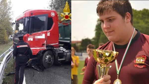 Scontro tra Tir e furgone: morto il 20enne Salvatore Stefani, giocatore del Rugby Feltre
