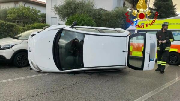 Si ribalta con l'auto e piomba contro le vetture parcheggiate: ferita una donna