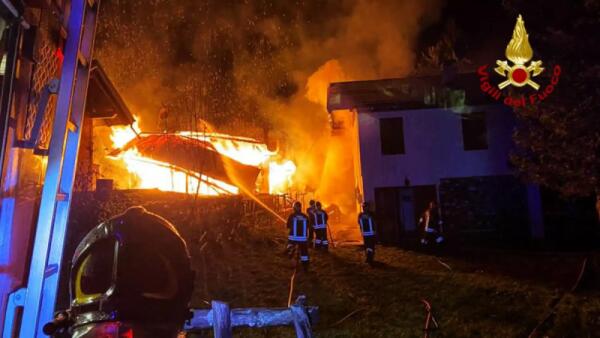 Furioso incendio distrugge tre abitazioni ad Auronzo di Cadore