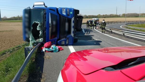 Tir si ribalta in curva, chiuso l’allacciamento A4/A34