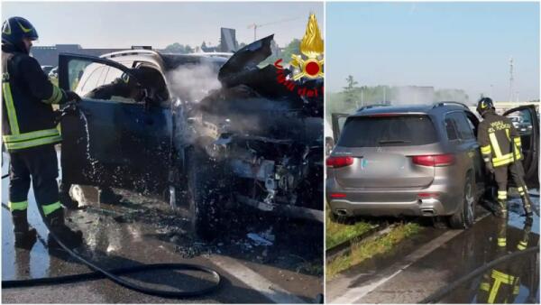 Mercedes GLB a fuoco dopo lo schianto contro il guardrail: Suv distrutto