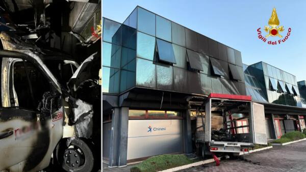 Furgone si scontra con un'auto e piomba contro uno studio medico che si incendia: 3 feriti