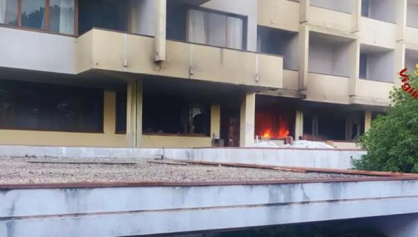 Incendio in un Hotel dismesso: i pompieri domano le fiamme