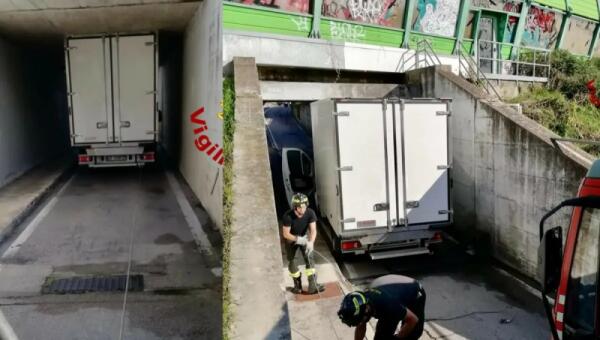 Furgone 'sbaglia' le misure e rimane incastrato nel sottopassaggio