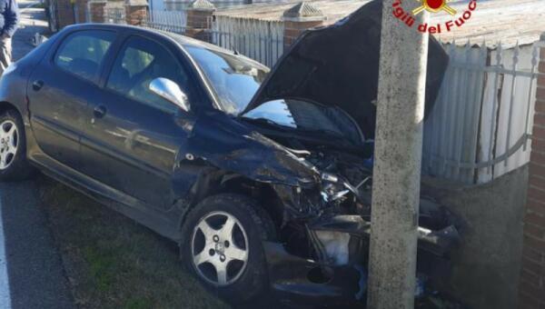 Scontro tra due auto, una finisce nel fossato contro un palo di cemento: un ferito grave