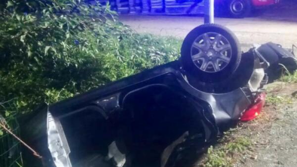 Auto vola nel fossato e si ribalta: tre feriti, uno rimasto incastrato tra le lamiere