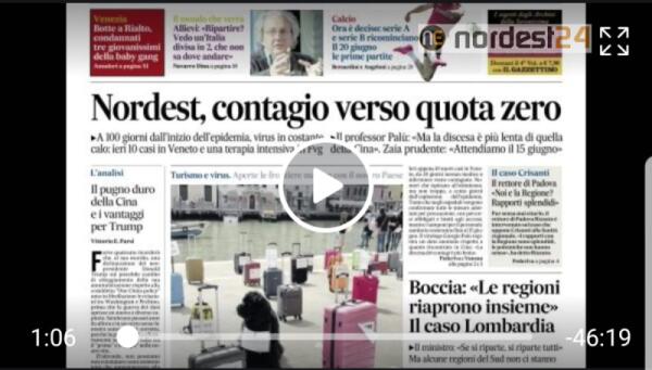 Nordest, contagio verso quota zero. Rassegna stampa 29 Maggio