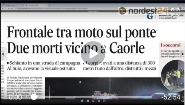 Scontro tra moto: 2 morti. Rassegna stampa 14 agosto