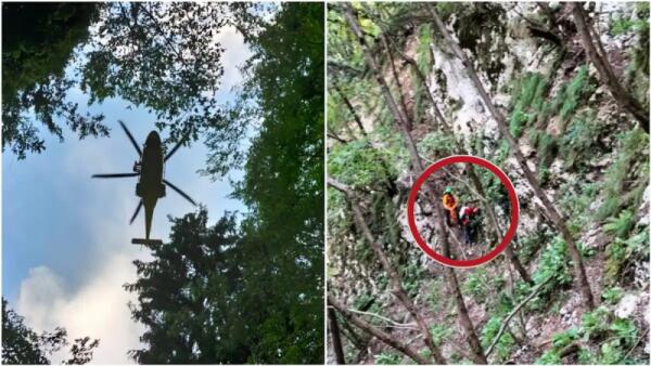 Perdono il sentiero, padre e figlia bloccati in un ripido canale aggrappati ad una pianta
