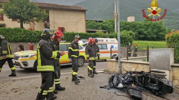 Scooter piomba contro un muretto e si incendia: deceduto un uomo, illesa la passeggera