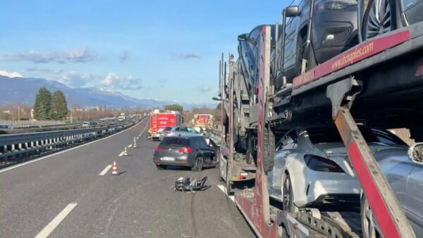 Incidente in A27, scontro tra 4 auto, una bisarca e un furgone