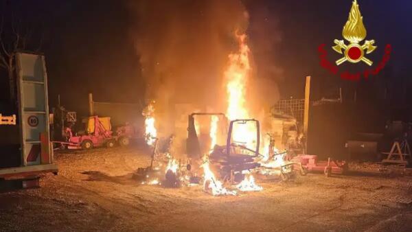 Trattorini rasaerba in fiamme in un'azienda a San Biagio di Callalta: distrutti, nessun ferito