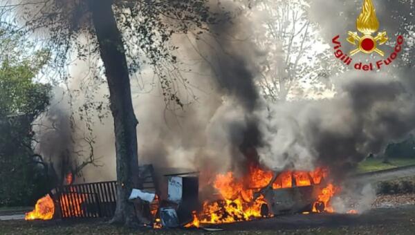 A fuoco 4 auto parcheggiate sotto ad un albero: distrutte