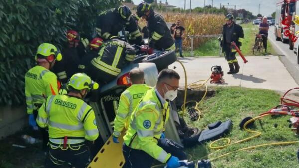 Piomba con la Renault Clio in un fossato: grave la conducente, incastrata tra le lamiere