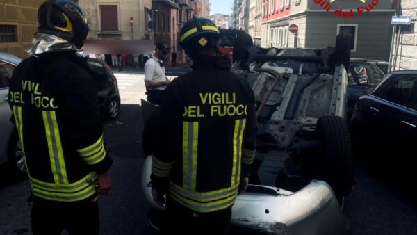 Paura a Trieste, auto piomba sulle macchine in sosta e si ribalta: ferito il conducente