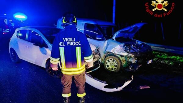 Violento frontale tra due auto: conducenti intrappolati tra le lamiere