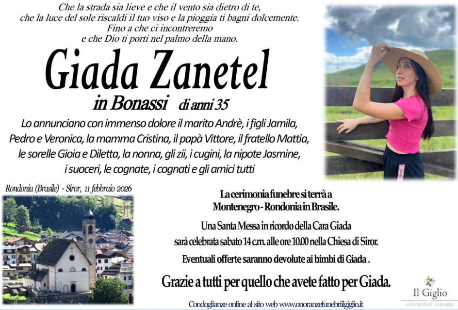 Giada si era trasferita qualche anno fa in Brasile, dove gestiva una fattoria insieme al marito. Lì aveva costruito una nuova vita, pur continuando a mantenere vivi i legami con il Primiero e la sua famiglia in Italia.