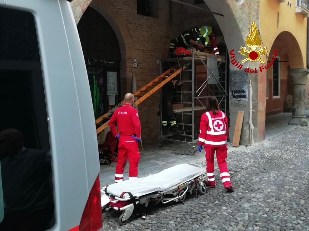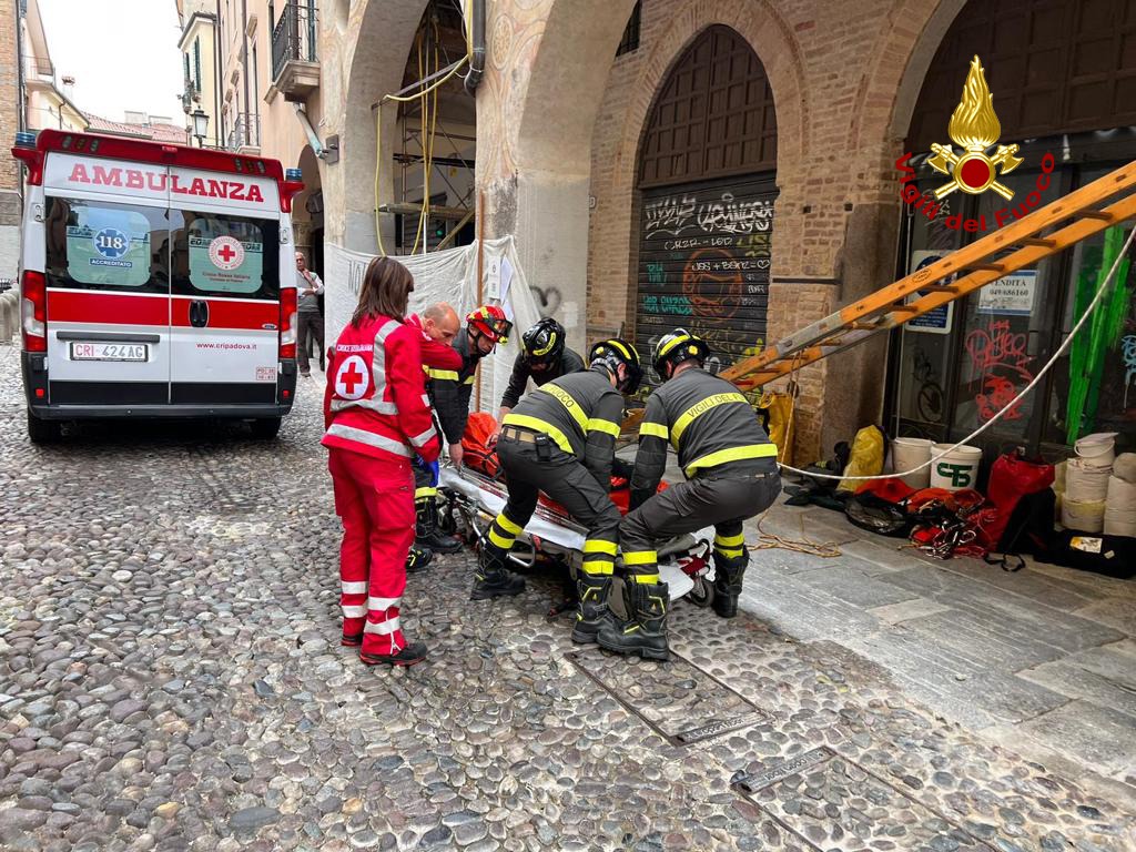 PADOVA. Alle 13:15, di lunedì, i vigili del fuoco sono intervenuti in Via Soncin a Padova per recuperare un operaio accasciatosi per un malore sopra un trabattello a circa tre metri di altezza, mentre era intento a lavorare alla conservazione degli archi della via. I pompieri accorsi anche con personale SAF (Speleo Alpino Fluviale) hanno messo in sicurezza l’operaio, che è stato portato a terra e preso in cura dal personale sanitario della croce rossa per essere portato in ospedale in serie condizioni.