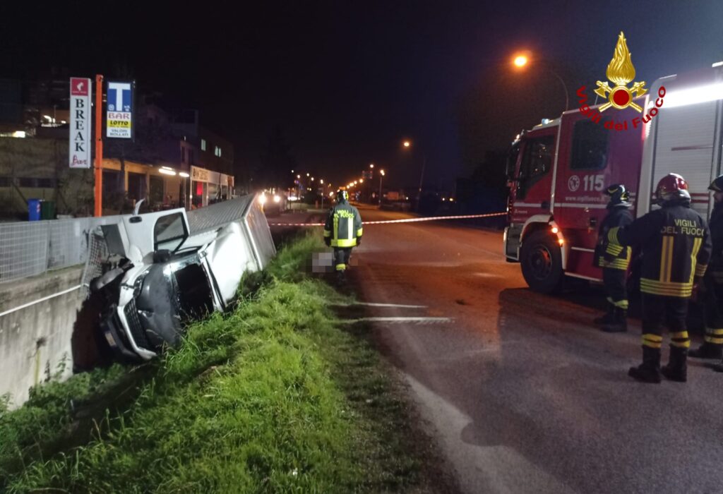 Alle 04:30, di giovedì, i vigili del fuoco sono intervenuti lungo la SR 11 in viale Milano, nelle vicinanze della rotatoria del cavallo, a Montecchio Maggiore in provincia di Vicenza per un furgone finito a bordo strada nel fossato per un malore dell’autista, deceduto nell’incidente.