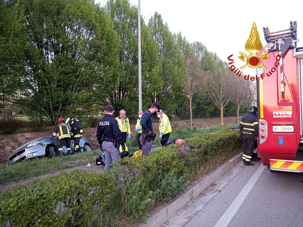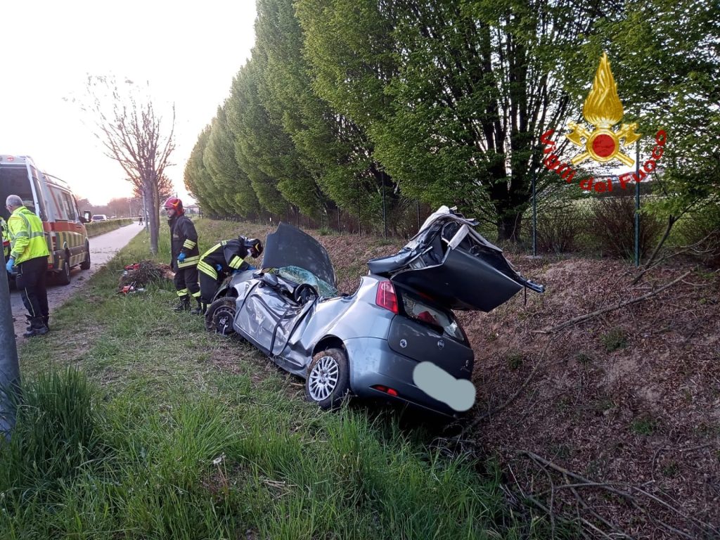 VICENZA. Tragedia della strada questa sera giovedì 14 aprile 2022 pochi minuti prima delle ore 19:30 in via Martiri delle Foibe in città a Vicenza. Una Fiat Grande Punto improvvisamente durante la marcia sbanda completamente sulla sinistra attraversando la corsia opposta terminando la corsa schiantandosi.