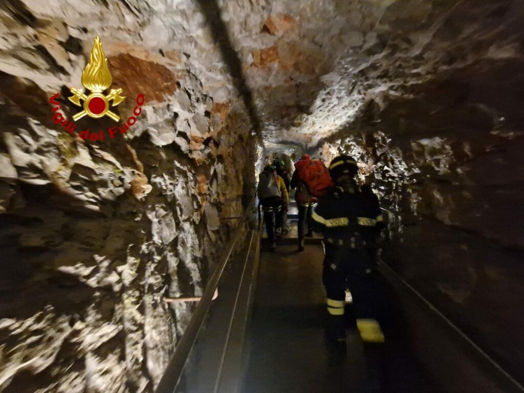 I Vigili del fuoco, assieme ai volontari del CNSAS, hanno raggiunto la malcapitata e dopo averla stabilizzata in collaborazione al personale sanitario presente, l'hanno imbarellata e trasportata a spalle per 350 scalini, allestendo dei sistemi di sicura con corde nei tratti più impegnativi.
