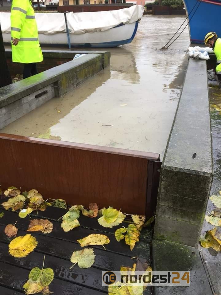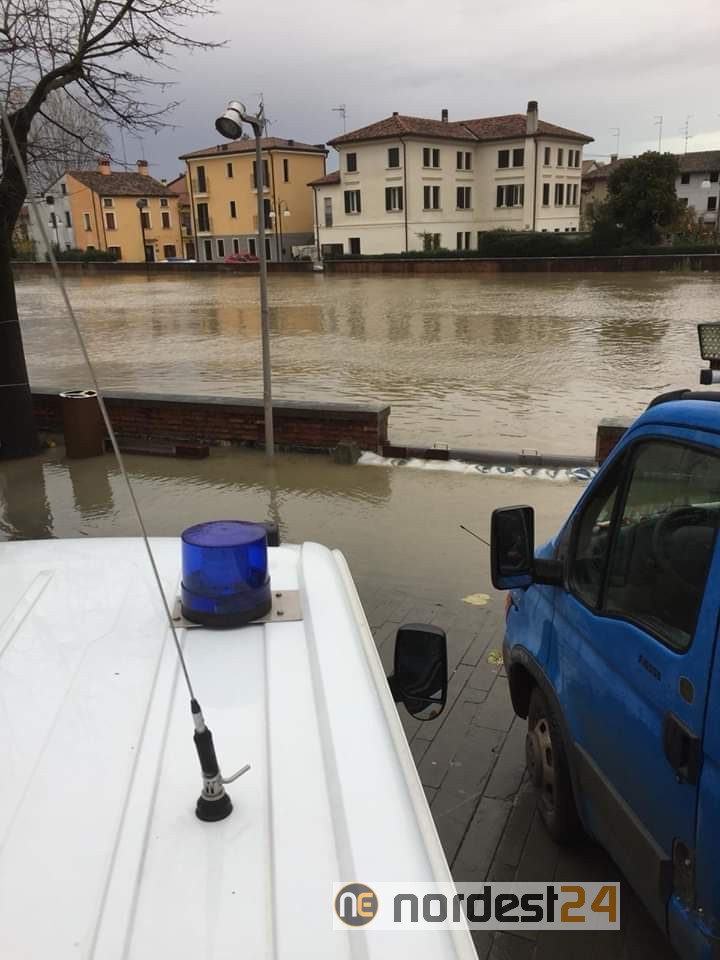 Nella piazza del Comune di Concordia Sagittaria (Venezia) in via Roma proprio nelle vicinanze del Municipio è appena esondato il fiume Lemene.