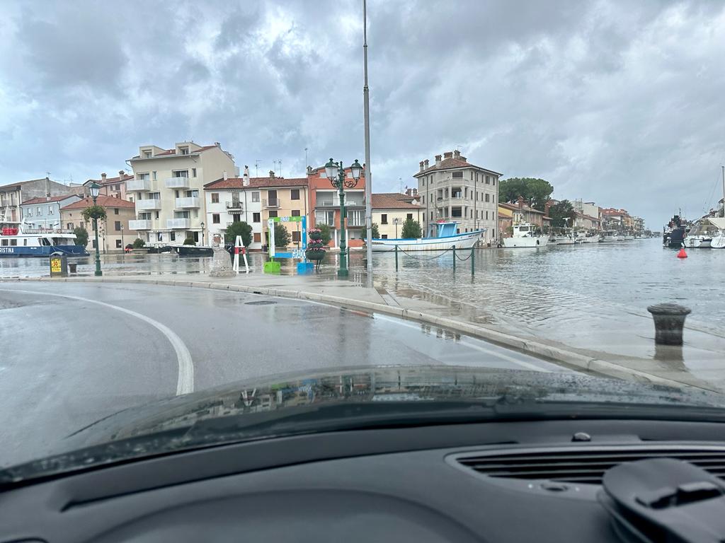 Maltempo, allagamenti di strade e scantinati. Acqua alta a Grado