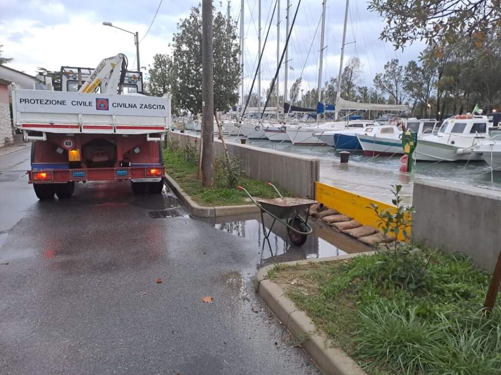 Dalle prime ore di oggi la squadra comunale dei volontari di Protezione Civile di Grado monitora la situazione sulla costa a seguito dell'ondata di maltempo.
