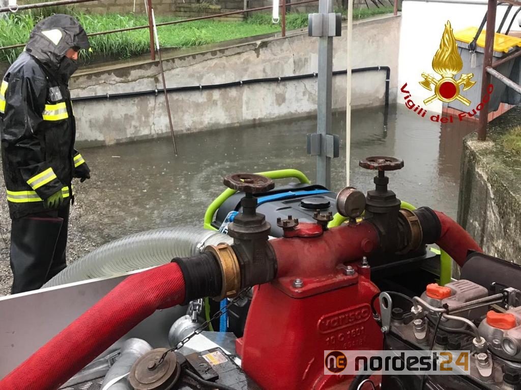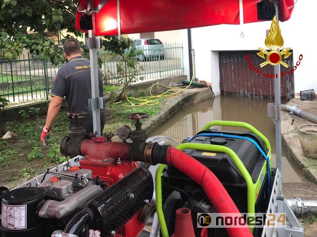 Nel pomeriggio interventi dei vigili del fuoco per il maltempo nella parte sud-occidentale della provincia di Vicenza soprattutto per allagamenti.