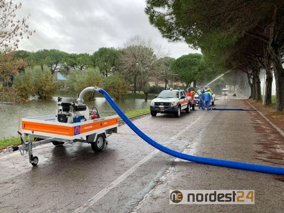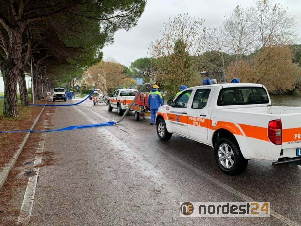 APRILIA MARITTIMA. Proseguono incessantemente i soccorsi da parte della protezione civile regionale e dei vigili del fuoco per numerosissimi interventi a causa del maltempo che sta flagellando il Friuli Venezia Giulia e Veneto nelle giornate del 12 e 13 novembre 2019.
