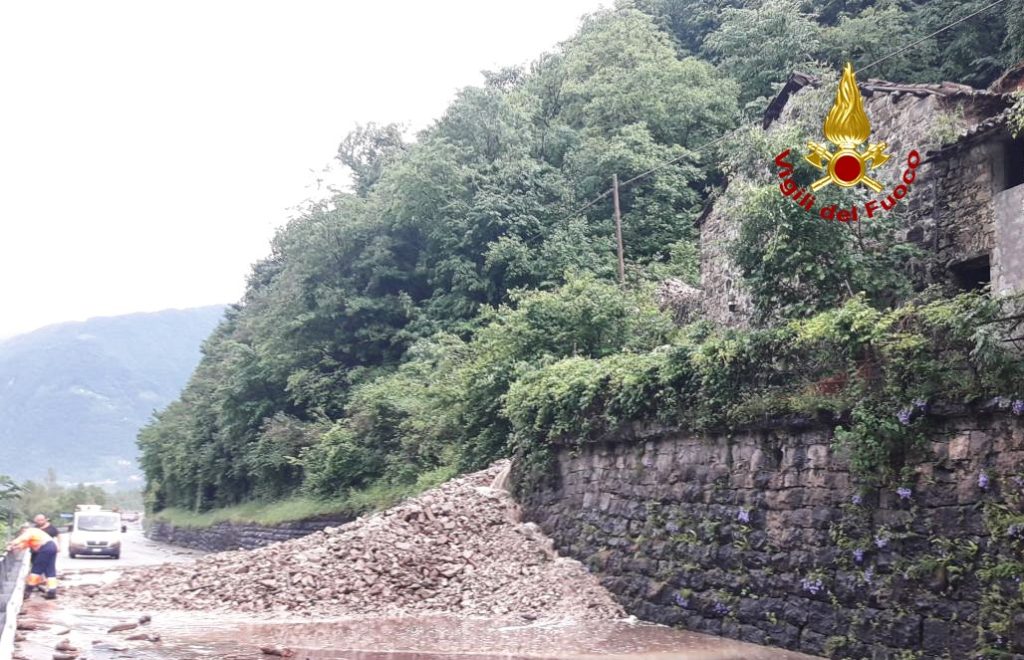 QUERO VAS (BL). Dalle 15:00 di oggi sabato 28 maggio 2022, i vigili del fuoco stanno operando lungo la SP1 bis (strada della Madonna del Piave) nel comune di Quero Vas in provincia di Belluno per una frana ghiaiosa che ha interrotto la circolazione.