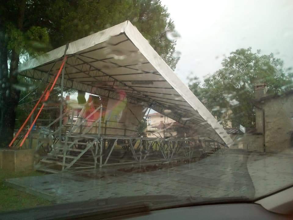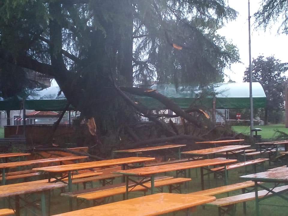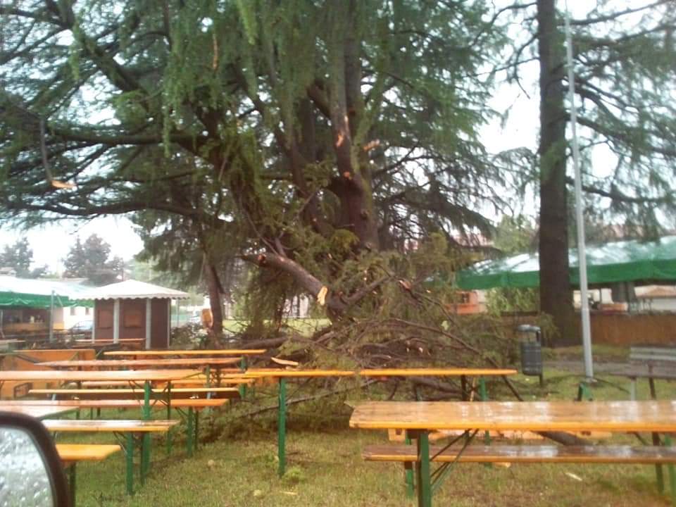 I rami hanno colpito alcune vetture, un furgone e divelto il tendone di una sagra. Una donna è rimasta ferita, ma, a quanto si apprende, le condizioni non sarebbe gravi.