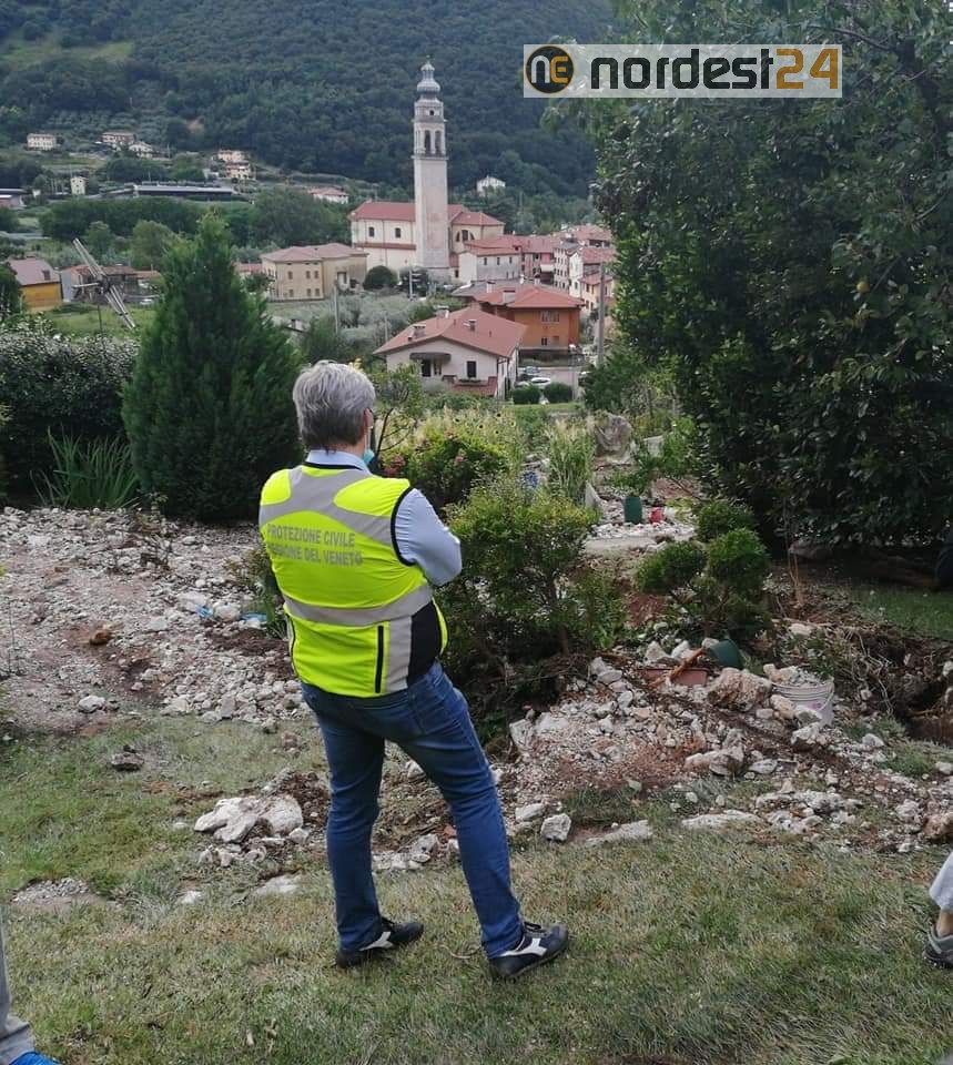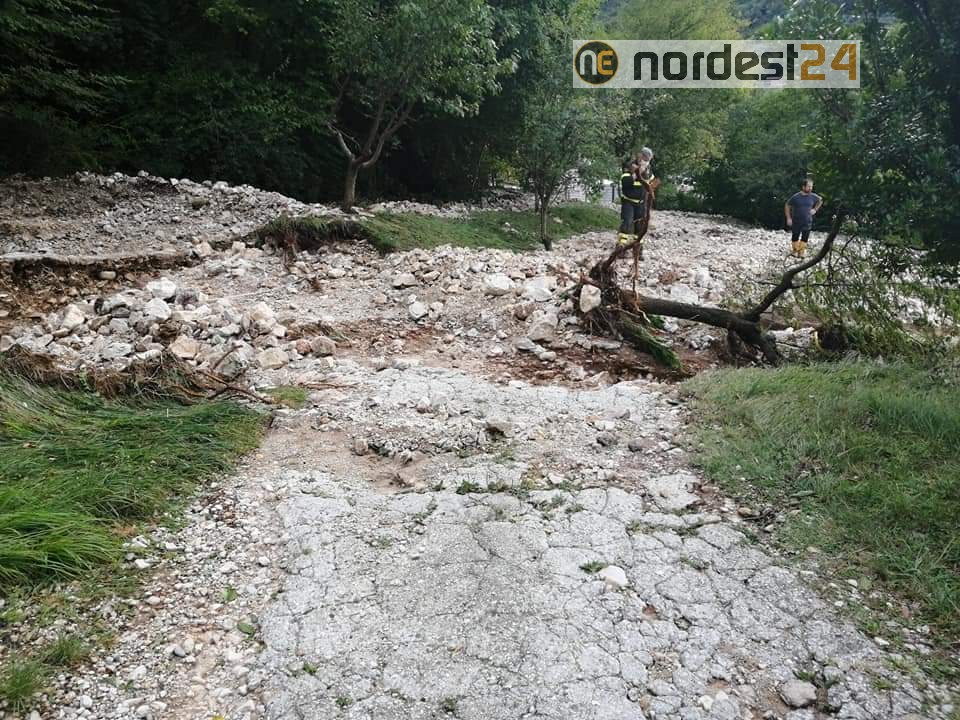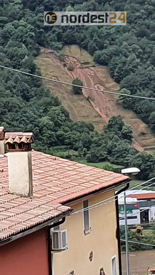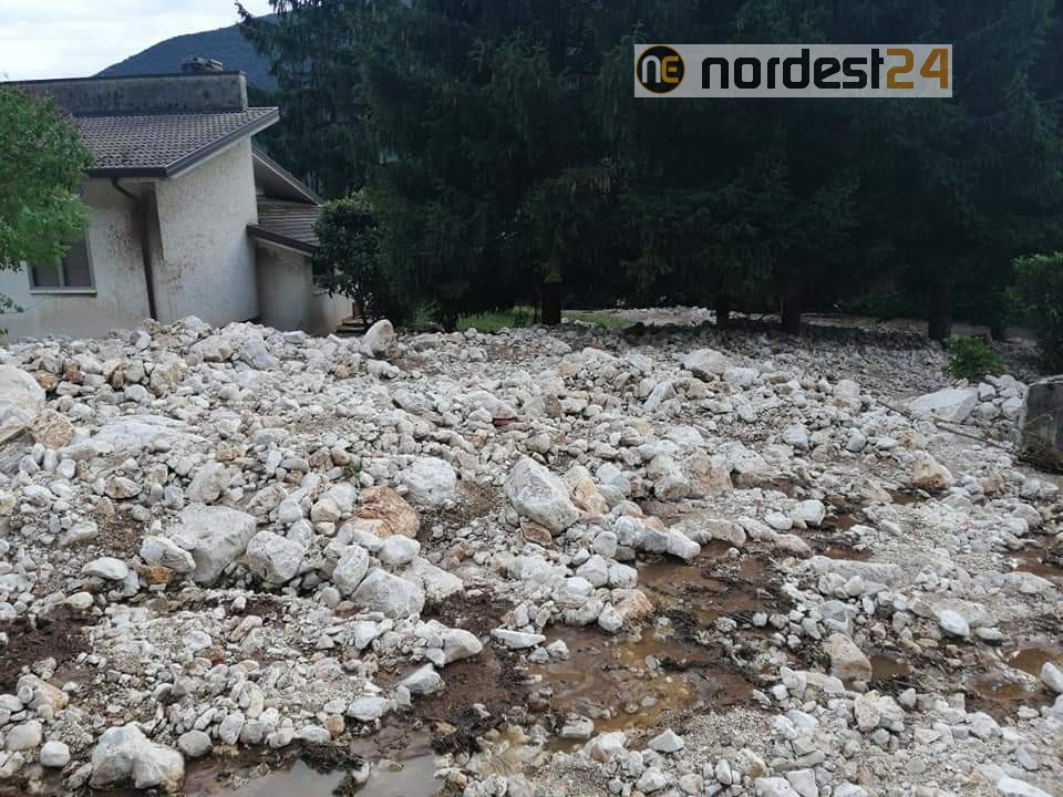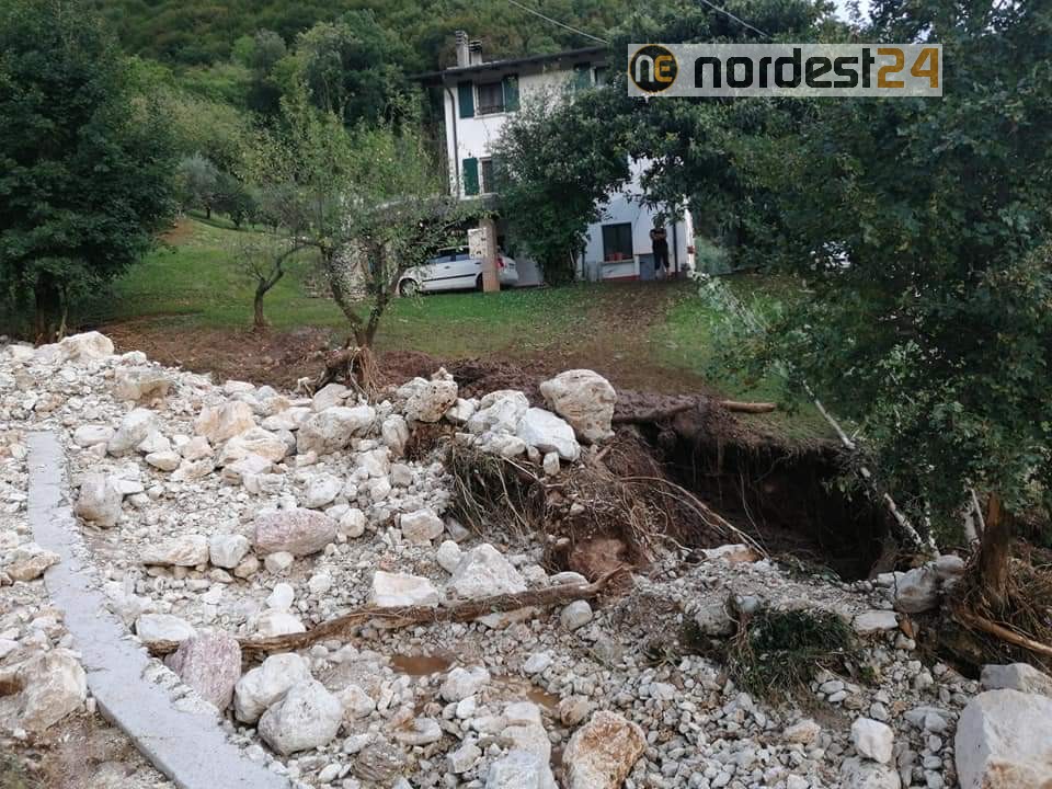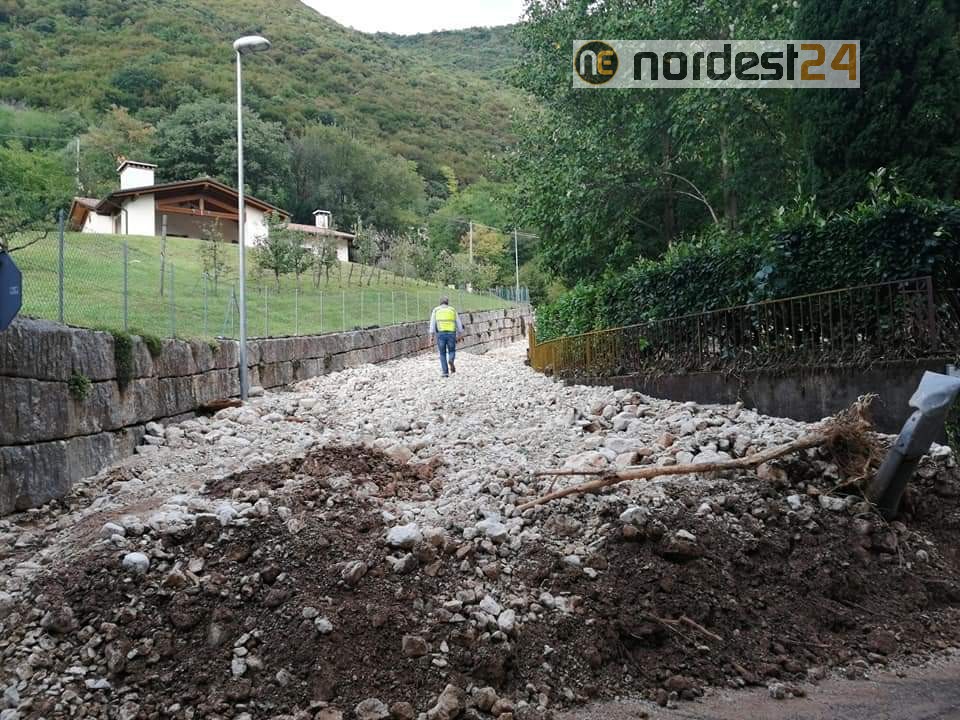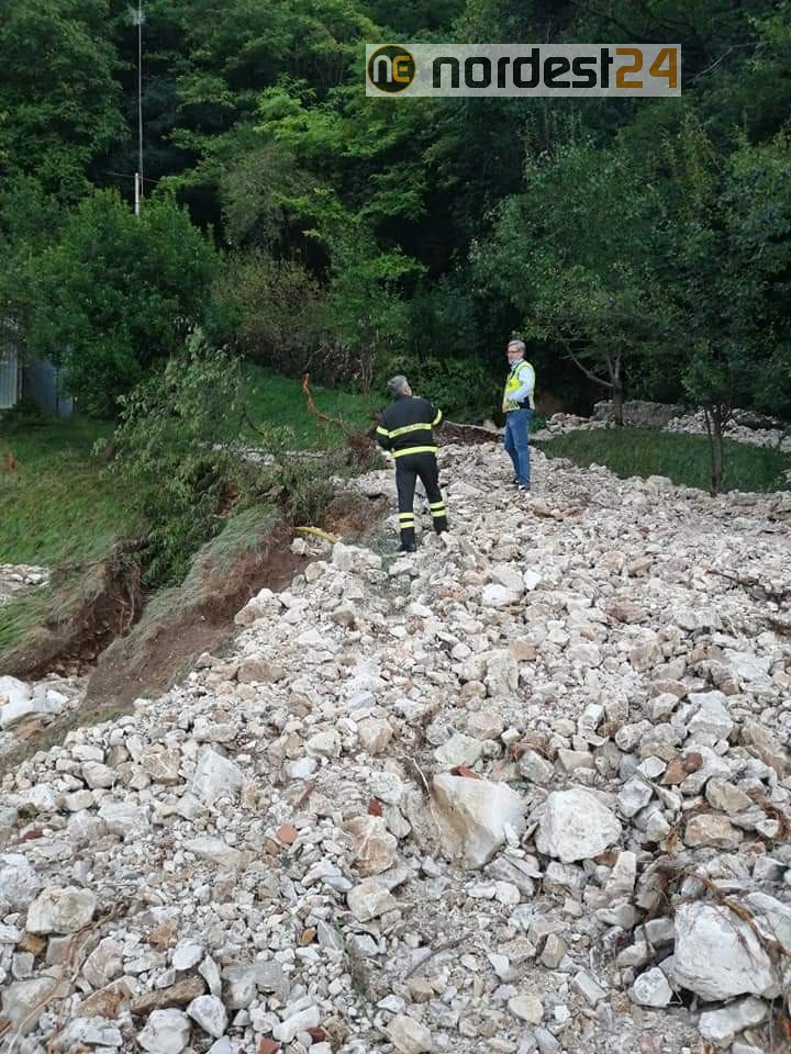 Una colata di fango e detriti ha bloccato parte degli accessi del paese di Solagna.