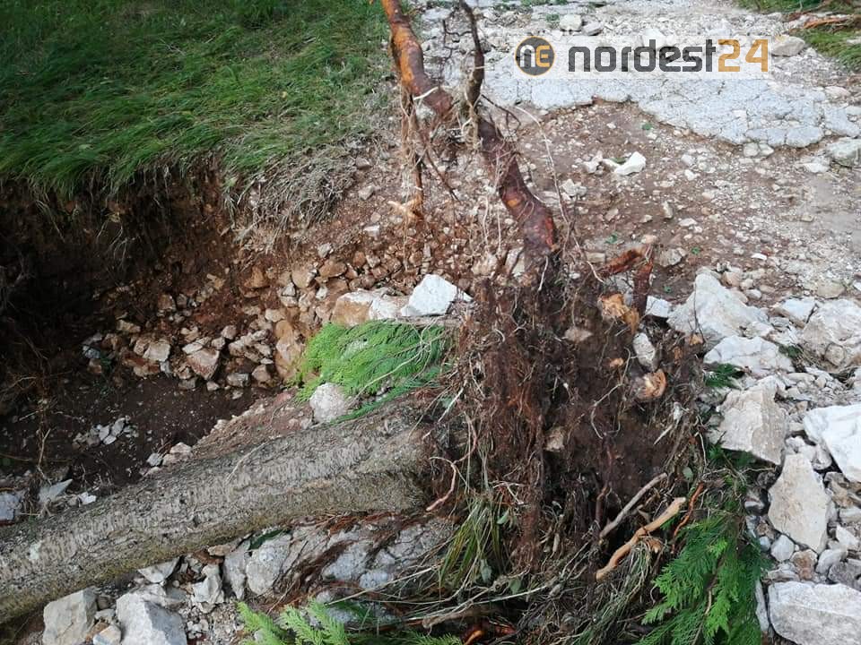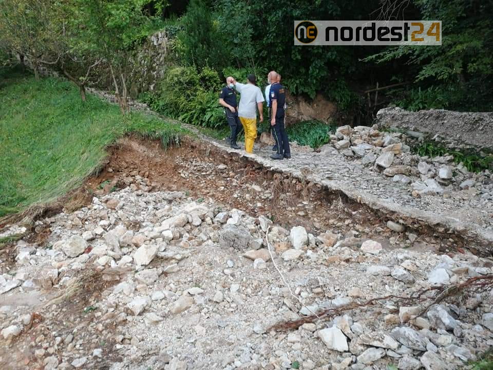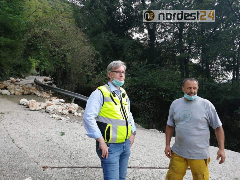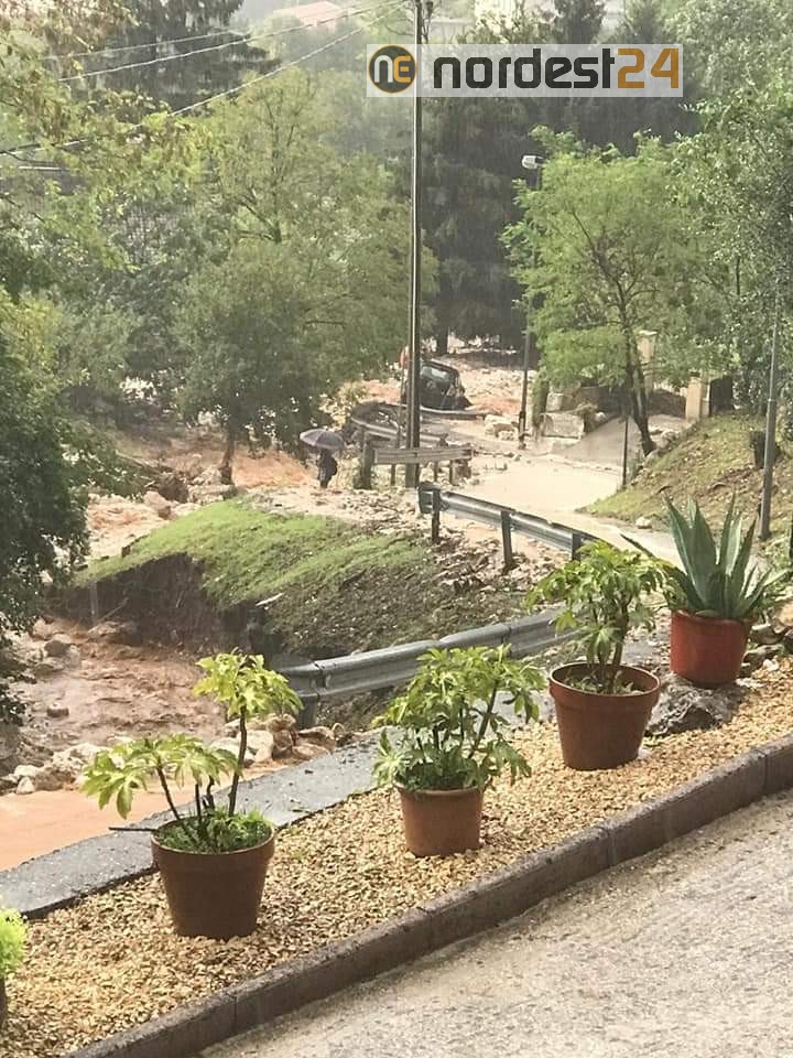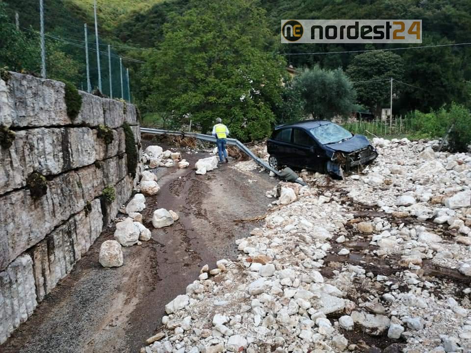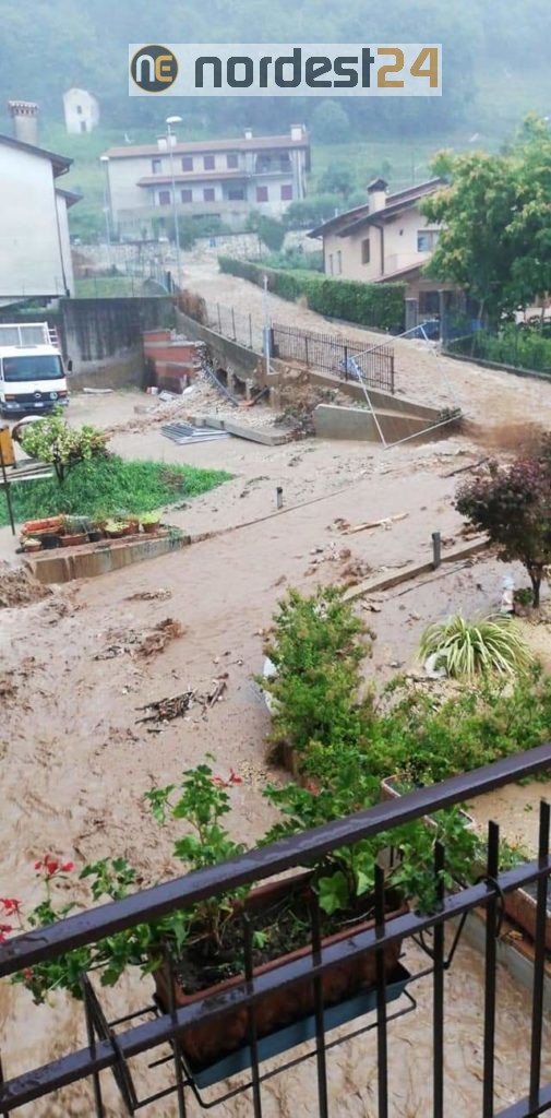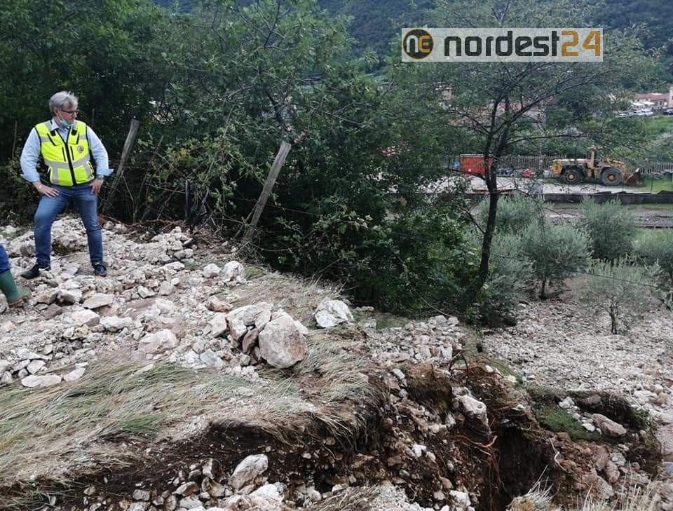 Una colata di fango e detriti ha bloccato parte degli accessi del paese di Solagna.