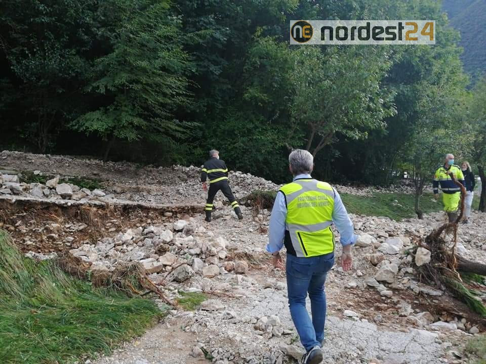 In azione oltre le squadre ordinarie i vigili del fuoco con macchine movimento terra arrivate da Verona e Belluno per la rimozione dei detriti.