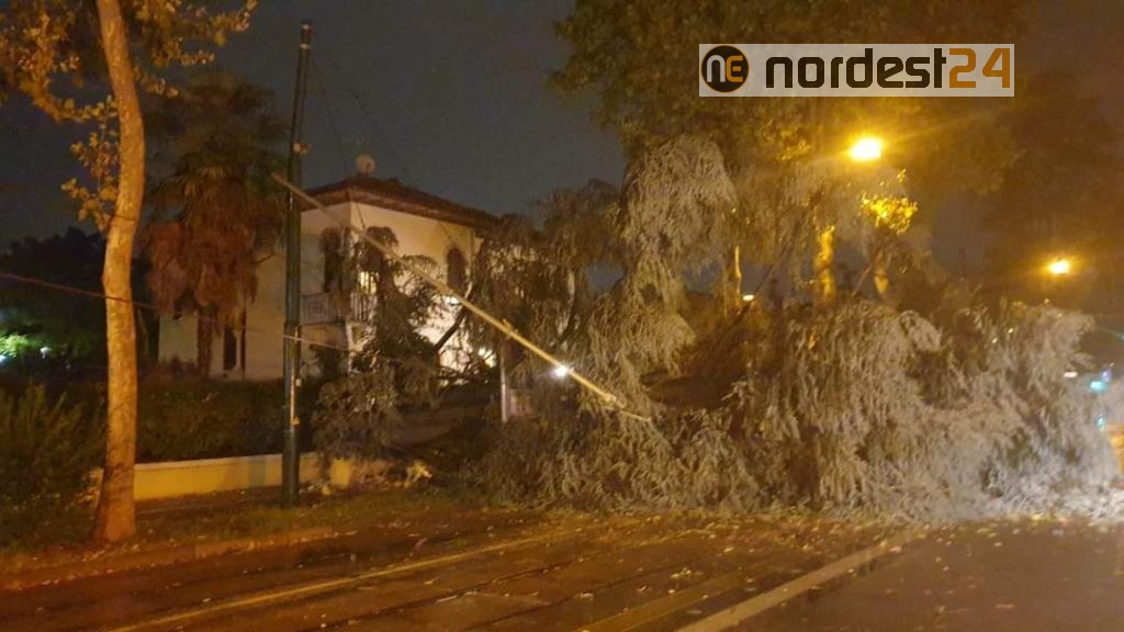 A San Donà di Piave la Strada Provinciale San Donà-Eraclea è chiusa per albero in sede stradale e molti piante cadute anche a San Donà centro.