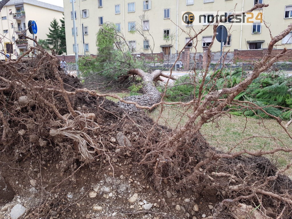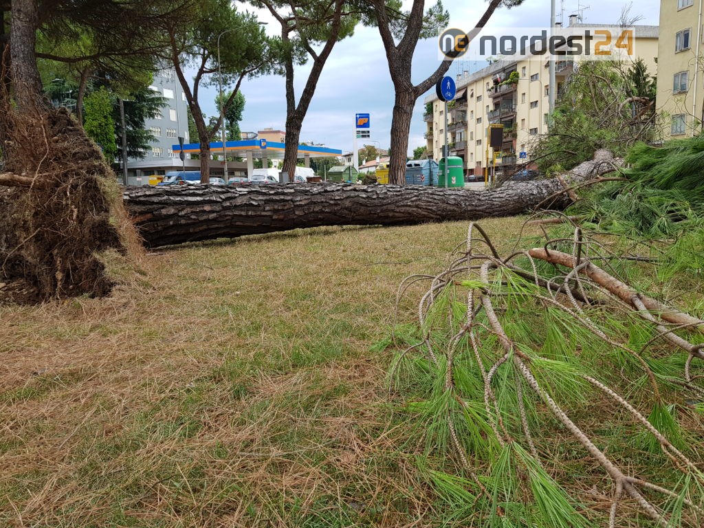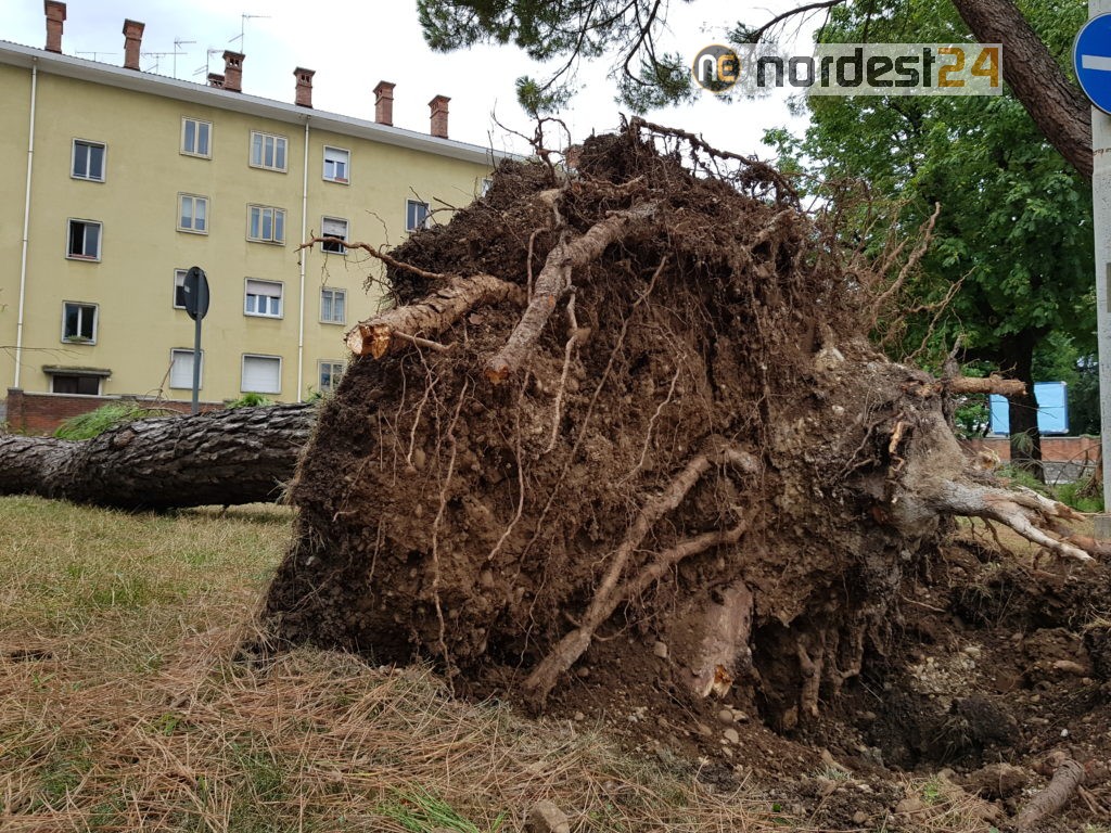 Nelle foto di Roberto Mattiussi siamo in viale delle Ferriere a Udine dove si è verificato il crollo di un grande Pino Marittimo.