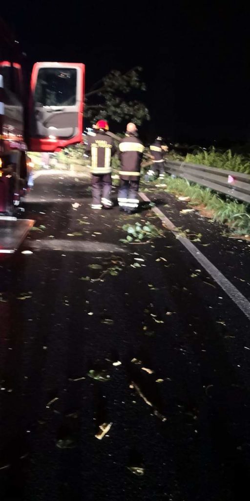 Distrutte le coltivazioni ma anche tanti danni ad automobili. A Mogliano Veneto è stata chiusa la circolazione sulla strada principale a causa della caduta di un grosso albero colpito da un fulmine.