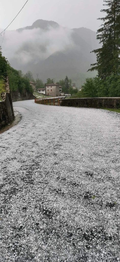 Non è mancata la grandine anche in alcuni paesi della Carnia ed in provincia di Pordenone, come a Tramonti di Sotto (vedi foto qui sotto).