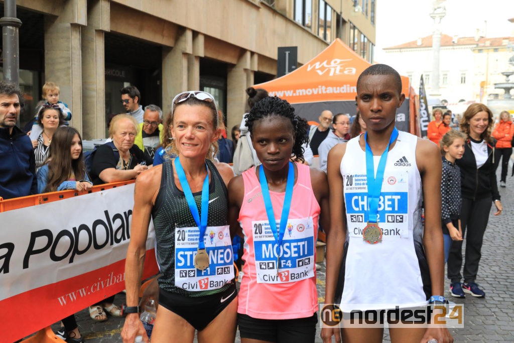 Ha invece brillato la stella della keniana Winfridah Moraa Moseti nella gara femminile: primato personale per la campionessa, che ha percorso i 21.097 chilometri della mezza udinese in 1h09'07". Seconda posizione per Risper Chebet, sempre dal Kenya, che ha chiuso in 1h09'37".