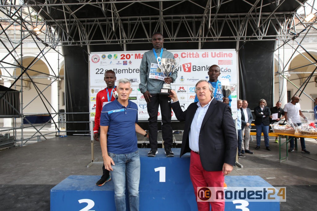 Proprio da piazza I Maggio, 20 anni fa, era partita l'avventura della mezza udinese, disputata ieri con condizioni meteo ideali. Le premiazioni si sono svolte sul palco di piazza Libertà, alla presenza del presidente dell'Associazione Maratonina Udinese, Paolo Bordon, del vicepresidente Venanzio Ortis, dell'assessore Pizzocaro, dell'assessore allo sport del Comune di Tavagnacco, Alessandro Spinelli, del vicepresidente di Civibank (main sponsor) Guglielmo Pelizzo, di Alfonso Bruno, presidente del Lions Club Udine Duomo, e di Mario Benedetti, consigliere della sezione udinese dell'Ana. In piazza Duomo, invece, si sono tenute le premiazioni della StraUdine.