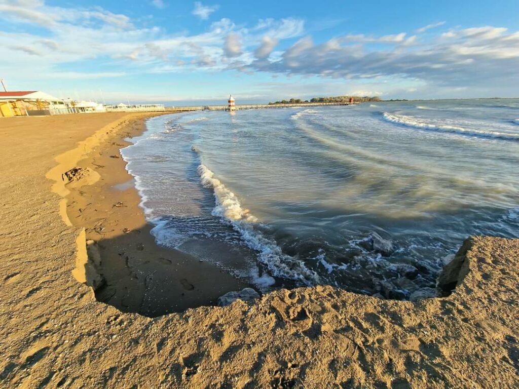 Mareggiata a Lignano danneggia la spiaggia e si forma un gradino di quasi un metro